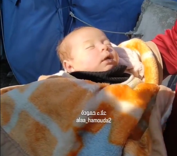 4-week-old Jumaa has passed away due to the unbearable cold inside his family's tent