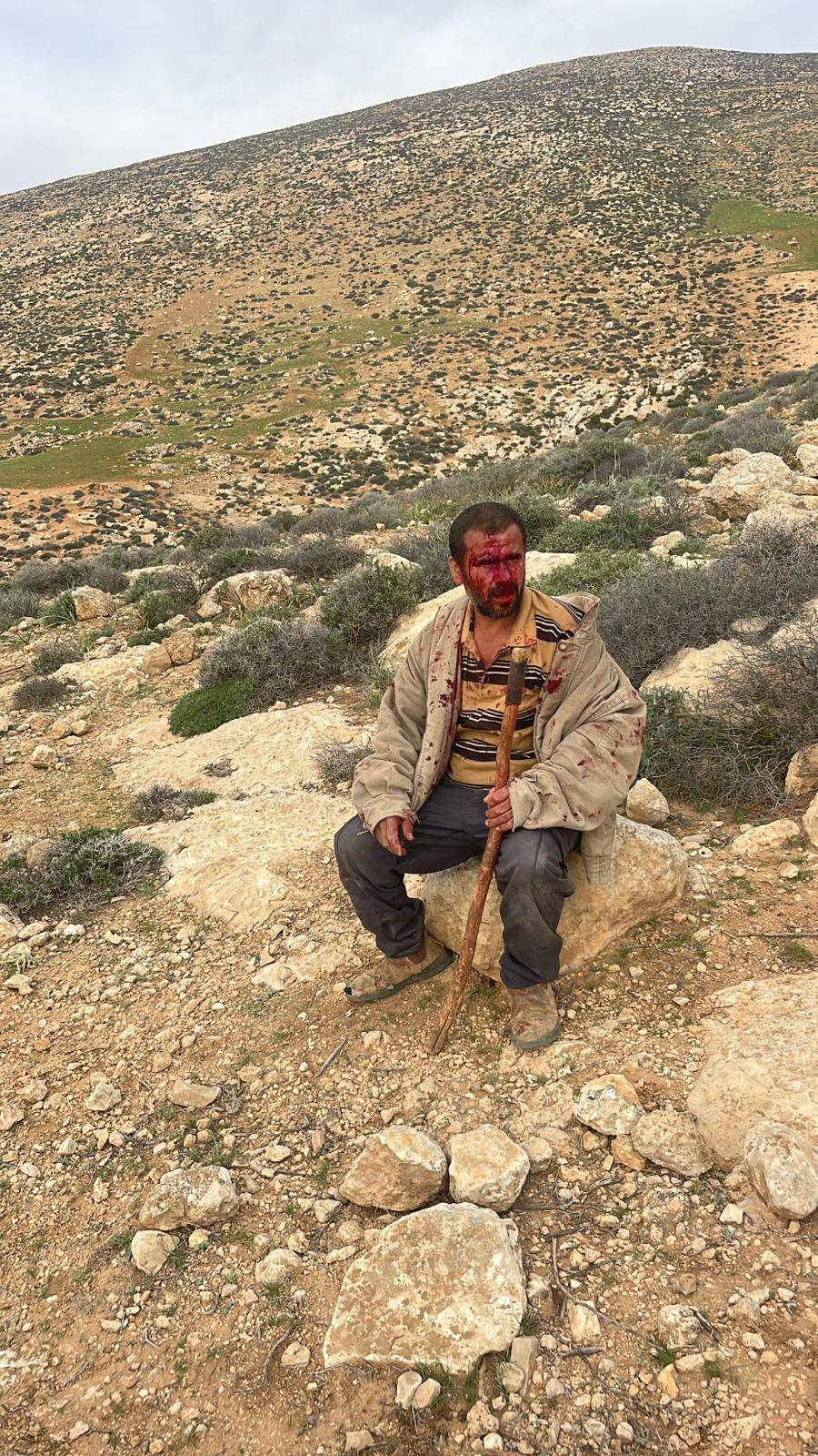 Then the settlers locked Oula Awad and her daughter in a side room as they beat her younger son, Ahmad, and her husband Aziz who sustained injuries and fractures : “They entered the room and hit the windows,” said Awad. They tried to burn the furniture. “My husband was standing on the stairs, and they started beating him.” A video taken by Qusai and shared by Basel Adra showed Ahmad on the ground with a head laceration. Aziz lies nearby, his face bloodied.
