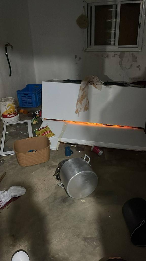 At the same time, the army returned and invaded Jinaba to finish breaking and destroying what the settlers had failed to do., around 2 a.m.. Then, the soldiers, present for more than seven hours, spilled the residents' food, emptied the cupboards, tore off the window bars, and arrested at least one resident. (According to @mistaclim)