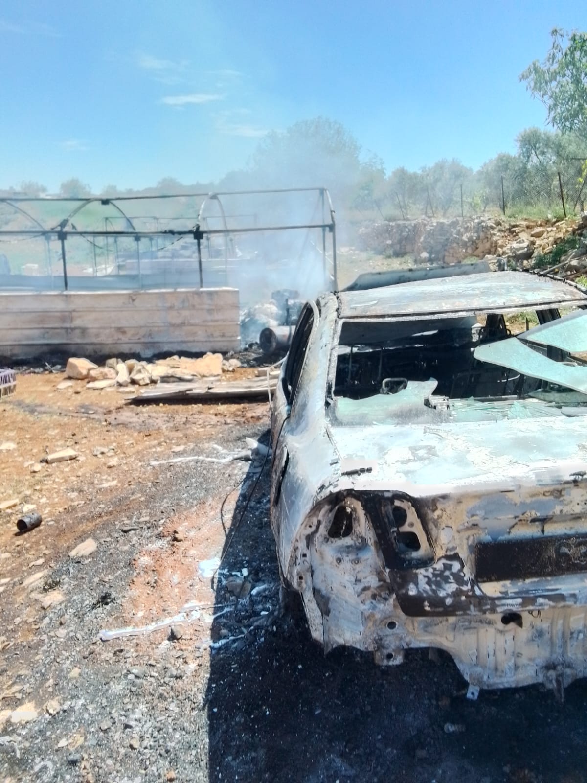 @Yesh_Din researcher reported that dozens of settlers who arrived in the area, set fire to tents of Palestinian communities, agricultural warehouses and fields, as well as vehicles. The settlers arrived with military force that fired tear gas and rubber bullets at farmers who tried to defend their property. The settlers arrived from a new outpost established in Area B.