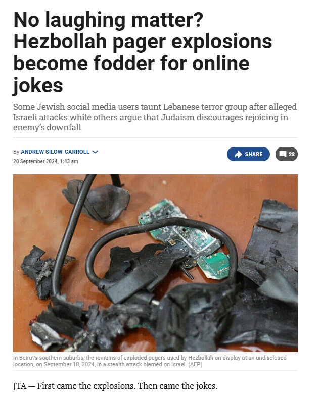The day after the explosion of rigged pagers and walkie-talkies in Lebanon in mid-September 2024 — social media among some Israelis produced memes mocking those killed or injured.