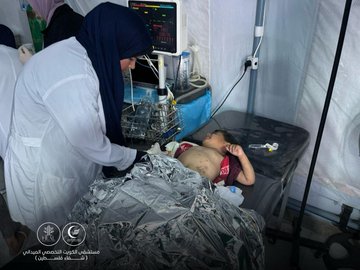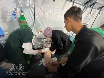Around 10:30 am, an Israeli airstrike targeted people around dispalcement tents in the vicinity of the Kuwait Specialized field hospital in Khan Younis, killing three people and injuring a number of children.