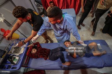 Around 10:20 pm, a second Israeli airstrike targeted the the Abu Hamisa North School. The IDF had warned that it would strike the adjacent Ibad al-Rahman mosque. As such, displaced people sheltering in the mosque moved to the northern school, only to be bombed by the Israeli army there. Al-Awda Al-Nusseirat hospital receives 14 dead bodies, including 9 children.