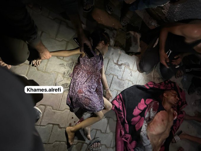 Around 10 pm, an Israeli strike targeted the dispalcement tent of the Abu Ouda family in a dispalcement camp at the port of Gaza, killing seven people including children.