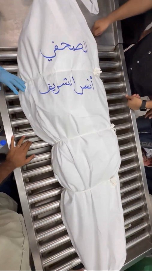 Around 11:20 pm, an Israeli airstrike targeted the tent o Al-Jazeera's staff at Al-Shifa Medical Complex, killing 6 journalists including renowned Al-Jazeera correspondents Anas Al-Sharif and Mohammed Qriqea.