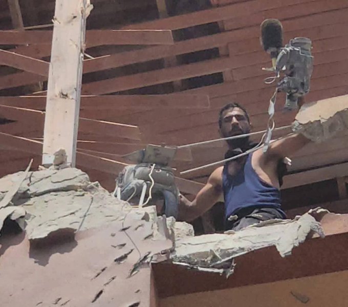 Around 10:10 am, an Israeli strike targeted the upper floors of the Al-Yasin buildings at the Nasser Medical Complex in Khan Younis where several journalists were gathered to access internet to perform their work.