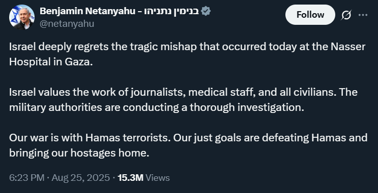 Investigation: Invetsigative journalist Younis Tirawi uncovered that the IDF perpetrated the massacred after being informed by a an Israeli OSINT enthusiast named Rafael Hayun about his suspicion of a camera being installed on the 4th floor of the hospital.