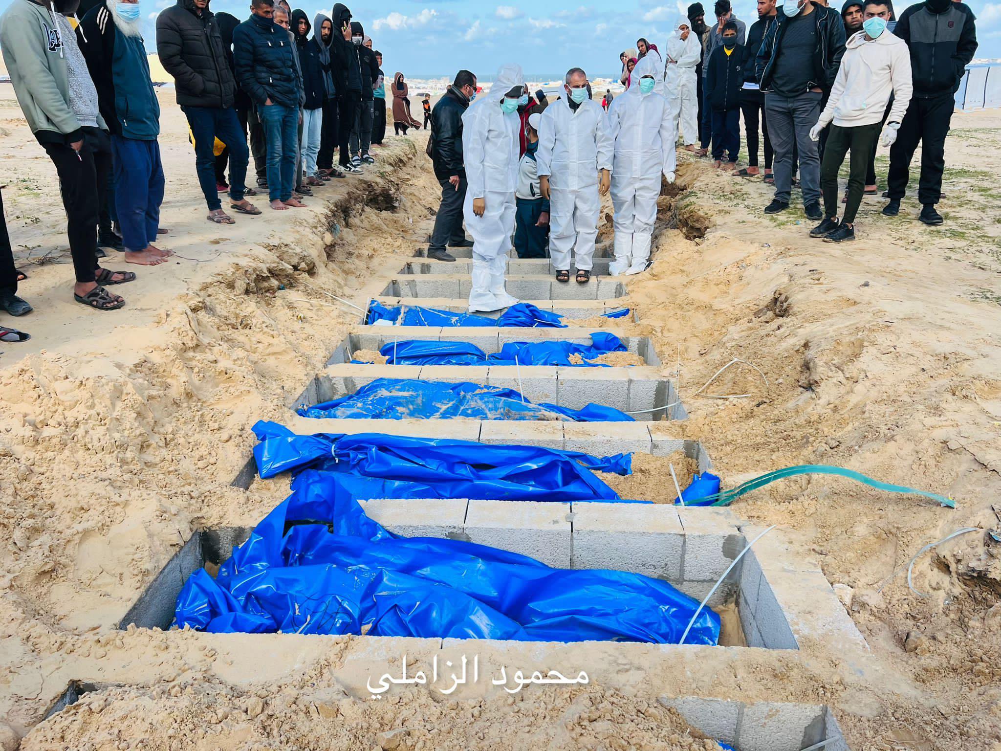 Israel has returned the bodies of 111 Palestinian civilians (Women, men and children) In Khan Younis, 111 bodies wrapped in bright blue bags, without any identities nor precise origin, arrived in a shipping container on the back of a truck. They were buried the same day in a mass grave in Khan Yunis.