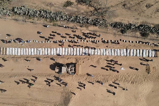 Yamen Abu Suleiman, the director of the Palestinian Civil Emergency Service in Khan Younis in southern Gaza, said on Monday that it was unclear whether the bodies had been dug up from cemeteries by the army during the ground offensive, or whether they were “detainees who had been tortured and killed”. “The occupation provided us with no information about the names, or ages, or anything. This is a war crime, a crime against humanity,”. He said the bodies would be examined in an attempt to determine the causes of death and to identify them, before being buried in a mass grave at a cemetery near Nasser Hospital in Khan Younis.