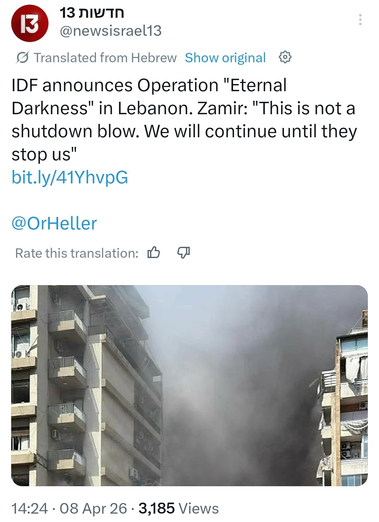 On April 8, 2026, the Israeli military announced the launch of Operation “Eternal Darkness”, describing it as its largest wave of strikes across Lebanon since the start of what it calls Operation “Roaring Lion”. According to the IDF, dozens of fighter jets struck more than 100 targets across Beirut, the Bekaa Valley, and southern Lebanon within approximately 10 minutes. The military said the strikes targeted Hezbollah positions, stating that the group is “embedded in the heart of civilian areas.”