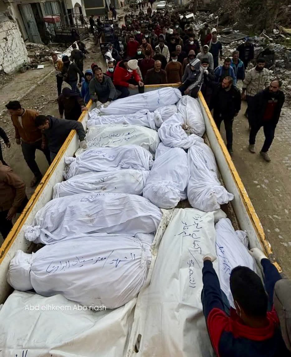 Amid Israeli prohibition and targeting of ambulance and civil defense crews in the North Gaza governorate the death toll rose to about 20 people. The martyrs were covered in plastic bags and buried in a mass grave.